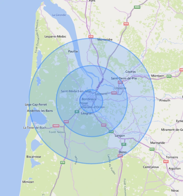 Dans un rayon de 50km autour de Bordeaux, facturé au forfait 80€ en complément de la réparation